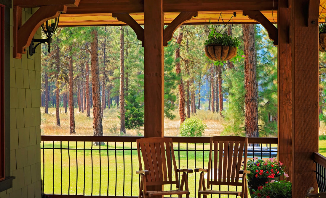 View from the back porch of a home in Leavenworth, Washington. With an elevation of 1,171 feet, the small town of Leavenworth is located on the southeast side of the North Cascades mountain range, part of the Cascade Range which extends from northern California to British Columbia.