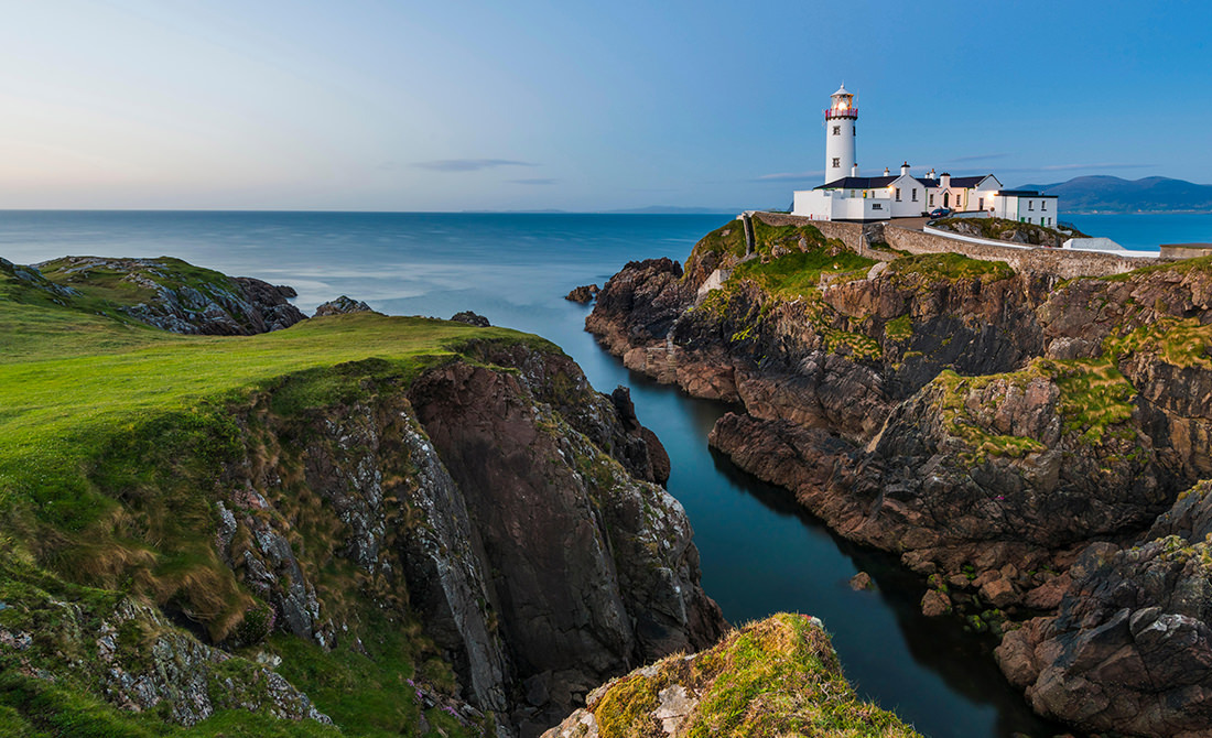 Springtime evening view of the shining Fanad Head Lighthouse (1817) along the rugged North Atlantic coastline of the Fanad Peninsula in the Republic of Ireland. March 17 is celebrated as Saint Patrick’s Day. Saint Patrick lived during the late fourth and early fifth centuries and is remembered for his Christian missionary work throughout Ireland. He is often called the Apostle of Ireland.