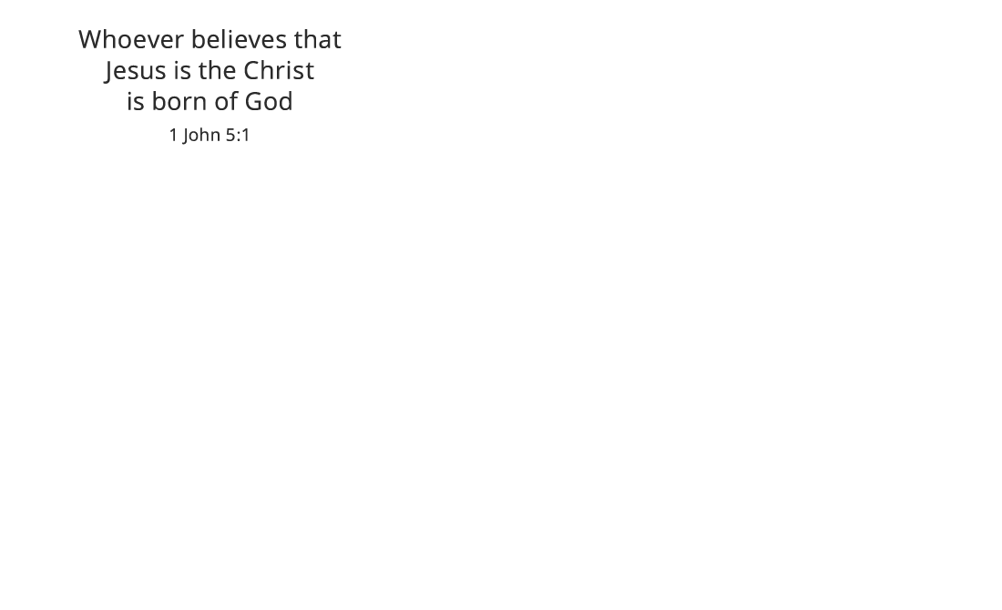 Whoever believes that Jesus is the Christ is born of God, and everyone who loves Him who begot also loves him who is begotten of Him.